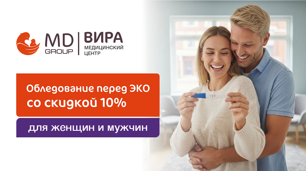 В MD GROUP «ВИРА» Вы можете подготовиться к процедуре ЭКО и пройти компексное обследование для женщин и для мужчин со скидкой 10%.